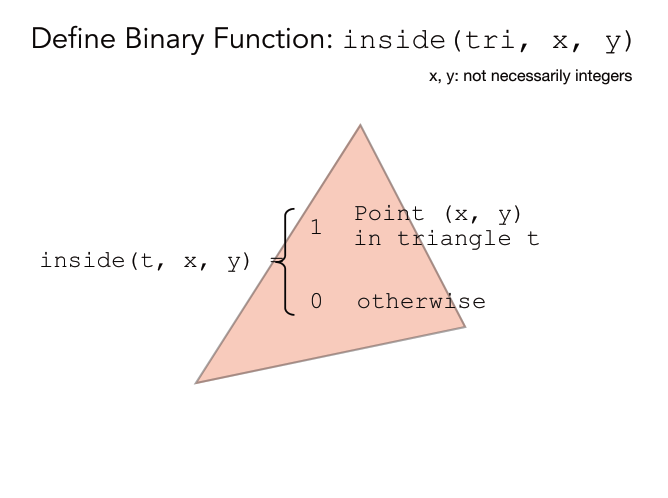 定义一个函数inside,给你一个三角形,给你屏幕空间的任意一点(x,y)我就知道点是不是在三角形内。